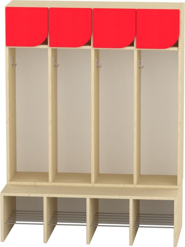 Az íves kialakítású felső ajtó kifejezetten a Komfort gyermeköltözőkhöz készült, biztonságos és figyelemfelkeltő kiegészítőként. Lekerekített formája és piros színe élénk, gyermekbarát megjelenést biztosít, amely jól használható csoportok vizuális megkülönböztetésére. Az ajtó segít a ruhák és személyes tárgyak rendezett, zárt tárolásában, miközben karakteres színfoltot ad az öltözőnek. Más színű ajtókkal kombinálva könnyen kialakítható az egyes csoportok elkülönítése. Strapabíró kivitele intenzív intézményi használatra készült.br>Gyártói hátterünknek köszönhetően bútorainkat igény szerint egyedi méretben, színben és formában is elkészítjük.