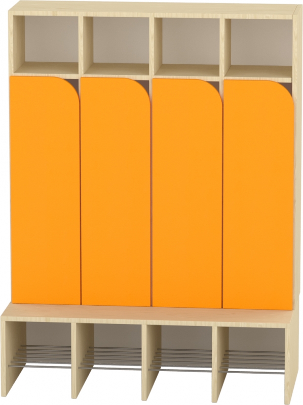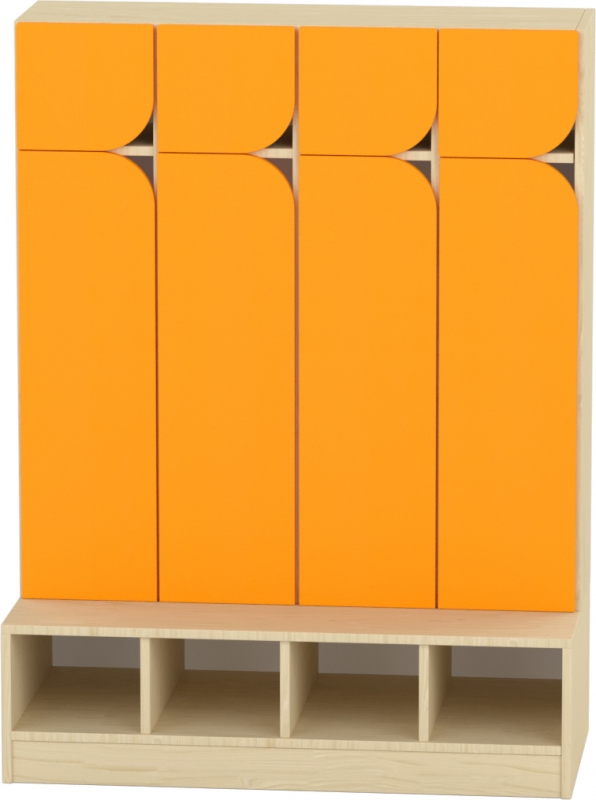Az íves kialakítású alsó ajtó gyermeköltözőkhöz készült, az alul ajtós kivitelek kiegészítő elemeként. A narancs színű felület vidám, gyermekbarát megjelenést biztosít, miközben segít a cipők és személyes tárgyak rendezett, zárt tárolásában. Az ajtó önállóan is rendelhető, így meglévő öltözők utólagos bővítésére vagy cseréjére is alkalmas. Lekerekített formája biztonságos használatot nyújt a gyermekek számára, strapabíró kivitele pedig intenzív intézményi használatra készült.br>Gyártói hátterünknek köszönhetően bútorainkat igény szerint egyedi méretben, színben és formában is elkészítjük.