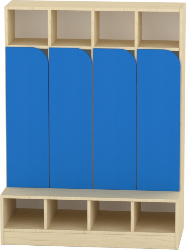 Az íves kialakítású alsó ajtó gyermeköltözőkhöz készült, az alul ajtós kivitelek kiegészítő elemeként. A sötétkék szín letisztult, mégis karakteres megjelenést biztosít, amely jól illeszkedik óvodai és bölcsődei környezetbe, és segíti a csoportok vizuális elkülönítését. Az ajtó hozzájárul a cipők és személyes tárgyak rendezett, zárt tárolásához, miközben egységes megjelenést ad az öltözőnek. Önállóan is rendelhető, így meglévő öltözők utólagos bővítésére vagy cseréjére is alkalmas. Lekerekített formája gyermekbarát és biztonságos használatot biztosít.br>Gyártói hátterünknek köszönhetően bútorainkat igény szerint egyedi méretben, színben és formában is elkészítjük.
