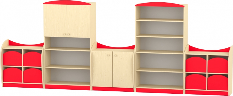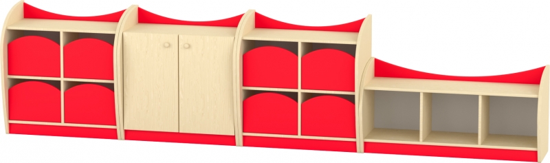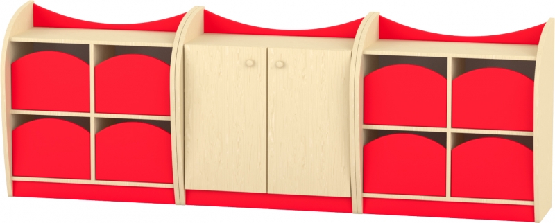 Íves kisszekrény - 4 fiókos A bútor jellegzetessége a lágyan ívelt, szélesebb oldalelem, amelynek köszönhetően a polc kissé beljebb kerül, stabil és biztonságos elrendezést biztosítva. A felsőíves színes betét és az alsó, hozzá illő lábazat modern, barátságos megjelenést ad. A teljes konstrukció lekerekített élei és íves sarokkialakítása biztonságos választássá teszik bölcsődés és óvodás környezetbe egyaránt. A bútor 4 fiókos kialakítású. A fiókok fém síneken futnak, így használatuk stabil, (a fiókok nem esnek ki) biztonságos. A túlnyúló, felsőperemes kialakításnak köszönhetően a kisszekrény teteje is pakolható, semmi nem esik le róla. Szín: juhar-piros