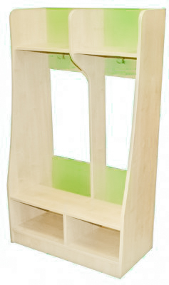A polcos kialakítású öltözőszekrény praktikus és jól áttekinthető megoldást kínál óvodai és bölcsődei környezetben. A nyitott kialakítás megkönnyíti a gyermekek számára az önálló használatot és a mindennapi rendrakást. Az alsó polcos rész ideális cipők és váltóruhák tárolására, míg a felső rész kényelmes öltözést biztosít. Letisztult formavilága és világos juhar színe harmonikusan illeszkedik az intézményi terekbe. Strapabíró kivitele hosszú távú, intenzív használatra készült.