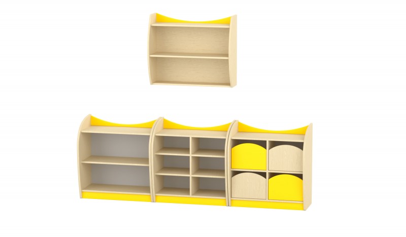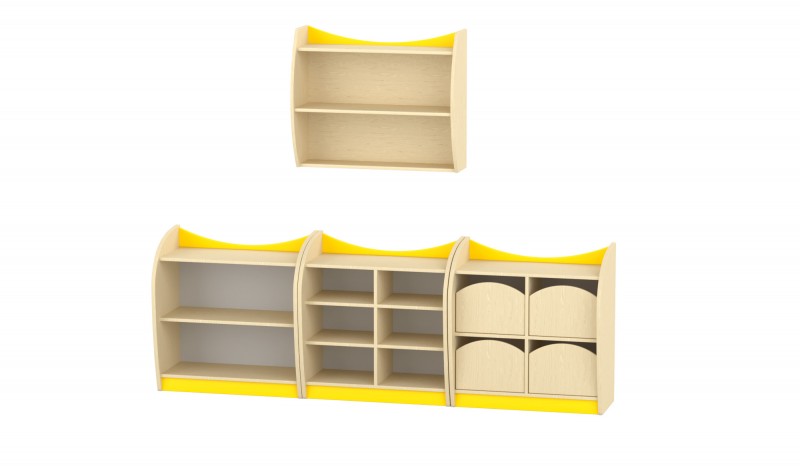 Íves falipolc A dekoratív, ívelt kialakítású, 1 polcos falipolc tökéletes választás bölcsődei és óvodai csoportszobákba. Lágyan ívelt oldalelemei és felső díszítése barátságos, modern megjelenést adnak, miközben biztonságos és könnyen hozzáférhető tárolóhelyet biztosítanak a mindennapi eszközöknek. Szín: juhar-sárga
