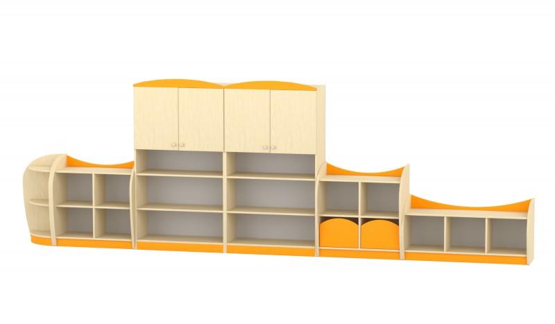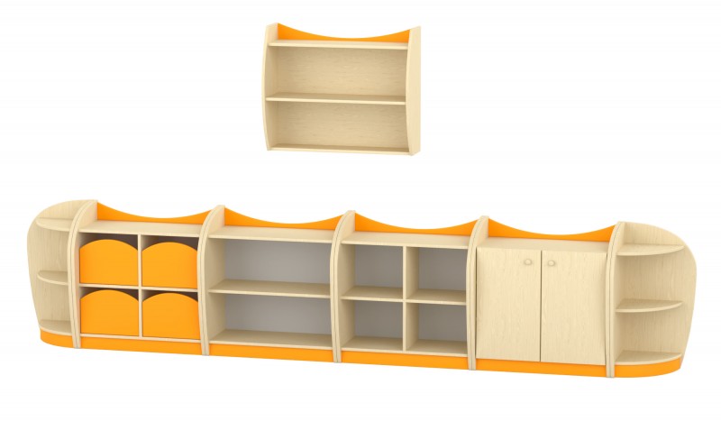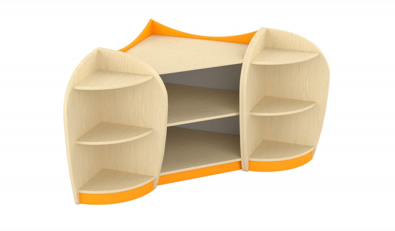 Íves elem A sarokelem három praktikus tárolószinttel rendelkezik, melyek íves oldallapjai nemcsak dekoratív megjelenést biztosítanak, hanem biztonságos használatot is a bölcsődei és óvodai környezetben. A precíz illeszkedésnek köszönhetően tökéletesen kapcsolódik a bútorcsalád további elemeihez. A felsőíves kialakítás megakadályozza, hogy a polc tetejéről bármi leguruljon, így biztonságos tárolófelületet kínál. Kompakt mérete és esztétikus formája ideális sarokba helyezhető megoldást nyújt a mindennapi használat során. Szín: juhar-narancs