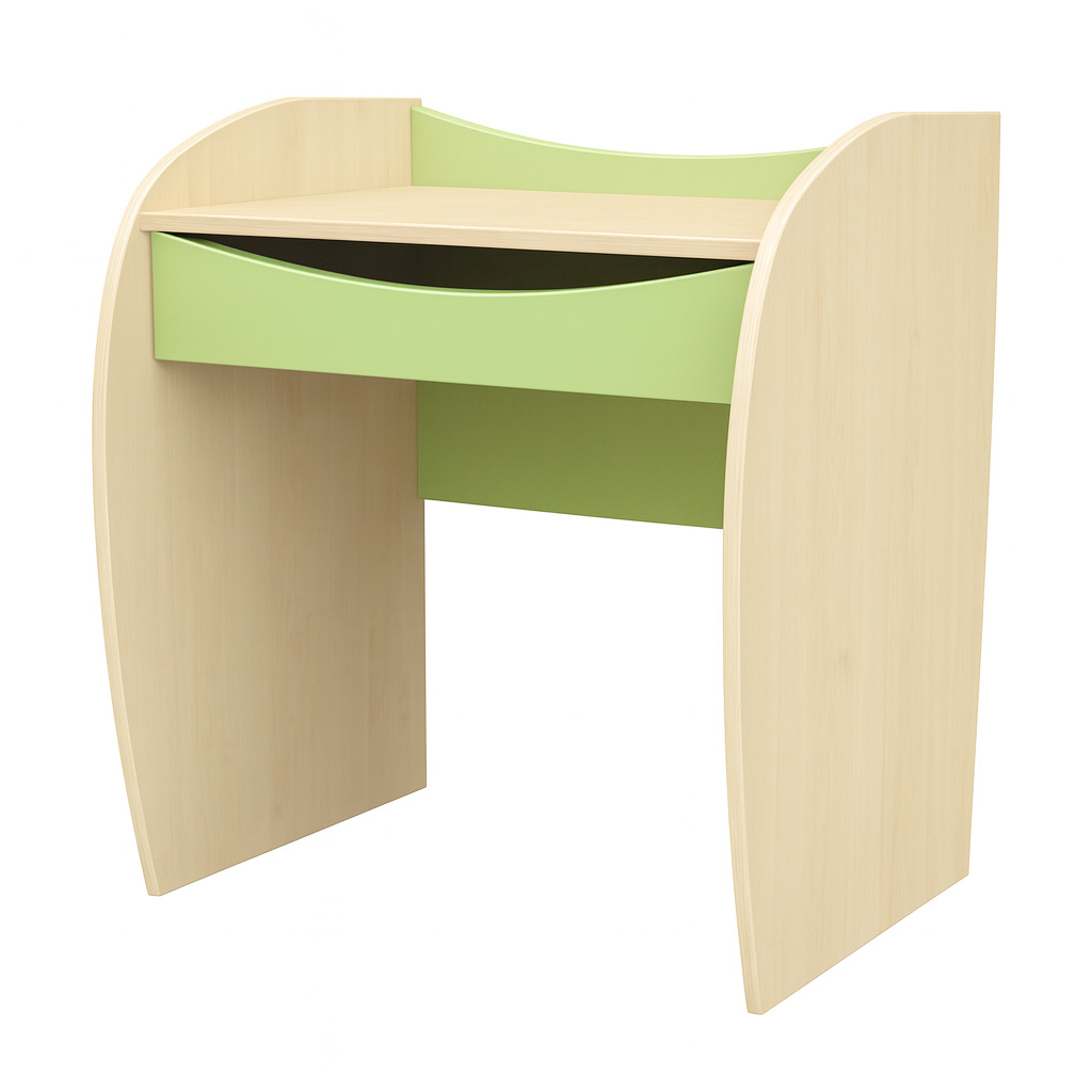 Fiókos asztal A bútor jellegzetessége a lágyan ívelt, szélesebb oldalelem, amelynek köszönhetően a polc kissé beljebb kerül, stabil és biztonságos elrendezést biztosítva. Kialakítás: 1 db tágas fiók Biztonság: lekerekített élek, íves kialakítás, éles sarkoktól mentes kivitel Ajánlott felhasználás: bölcsőde, óvoda, csoportszoba Szín: juhar-zöld