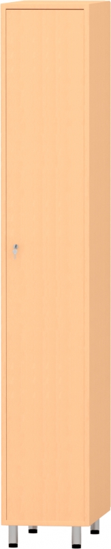 Felnőtt öltözőszekrény 1 személyes – bükk Anyag: 18 mm vastag laminált bútorlap Élzárás: 2 mm-es lekerekített ABS élzárás Hátfal: HDF lemez, térbeállítása nem javasolt Belső felszereltség: felül 1 polc, alatta vállfatartó rúd, 1 db kétágú fogas Lábazat: fém lábak a könnyebb takarítás érdekében Kivitel: készreszerelt, fém fogantyúval Változatok: 1, 2 és 3 személyes kivitelben elérhető Szín: bükk Szélesség: 30 cm Mélység: 52 cm Magasság: 180 cm