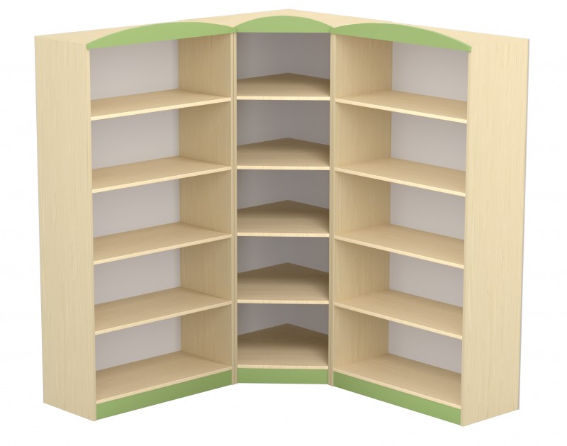 Ez a sarokszekrény óvodai és bölcsődei környezetbe tervezett, helytakarékos tárolóbútor, amely hatékonyan használja ki a sarkok adta lehetőségeket.