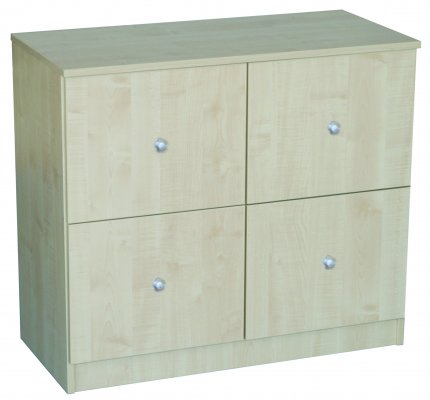 Ez a 4 fiókos, alacsony szekrény óvodai és bölcsődei környezetbe tervezett, praktikus tárolóbútor, amely a mindennap használt eszközök és felszerelések rendezett elhelyezését segíti.