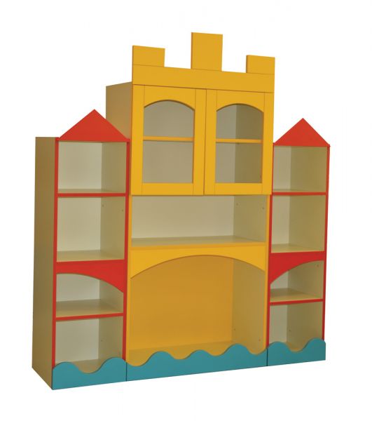 Polcos részekkel, színes elemekkel.