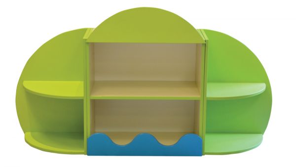 Mérete: 150x40x90 cm A szekrénysor nyitott polcokkal lett kialakítva. Színe: zöld, kék és juhar A bútor egy kis bokorhoz hasonló formával lett ellátva, így garantáltan kedves és feltűnő kiegészítője lehet az óvodai- és gyermekszobáknak egyaránt. Lekerekített, gömbölyded formái nem csak bájossá, de biztonságossá is teszik a bútort. Nyitott kialakításának köszönhetően könyvek, gyakran használt játékok vagy dekorációs elemek tárolására is alkalmas.