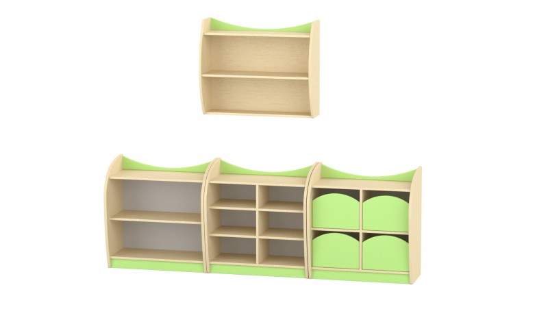 Szekrénysor, juhar-zöld XI. Ez a praktikus, falipolccal kiegészített szekrénysor kiváló választás óvodai és bölcsődei csoportszobákba, ahol fontos a jól rendszerezhető, biztonságos tárolás. A három alsó elem különböző funkciókat lát el: nyitott polcos tároló, többfakkos rendszerező és fiókos megoldás egyaránt helyet kapott benne. A felső, egy polcos falipolc tovább növeli a tárolókapacitást, miközben könnyen elérhető marad a gyermekek számára. Ívelt, lekerekített kialakítása biztonságos, barátságos megjelenést kölcsönöz a bútornak. 4 részes összeállítás 1. elem: alacsony polcos szekrény – 1 polcos, 2 fakkos 2. elem: 6 fakkos szekrény 3. elem: 4 fiókos elem 4. elem (felső): falipolc – 1 polcos, 2 fakkos Íves, lekerekített kialakítás Balesetmentes használatra tervezve Szín: juhar-zöld Készreszerelt termék. Térbeállítható: Nem Mérete: 246x38x86 cm