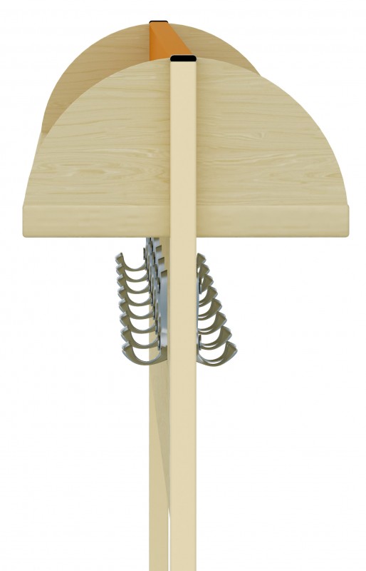 Polc anyaga: laminált bútorlap juhar-zöld színben Fémváz színe: bézs. Mérete: 119x20x90 cm 32 akasztós. 2 oldalán 8-8 db kétágú akasztóval. Polc két végén leesésgátlóval. Térbe állítható.