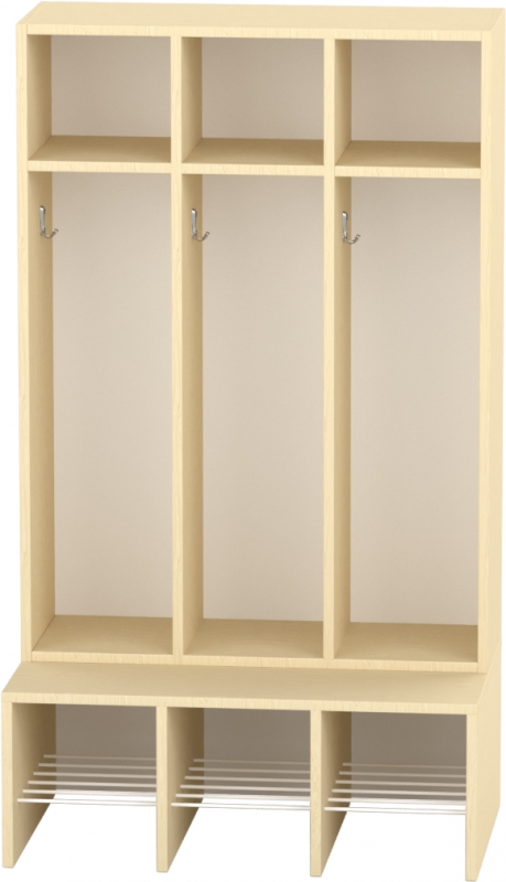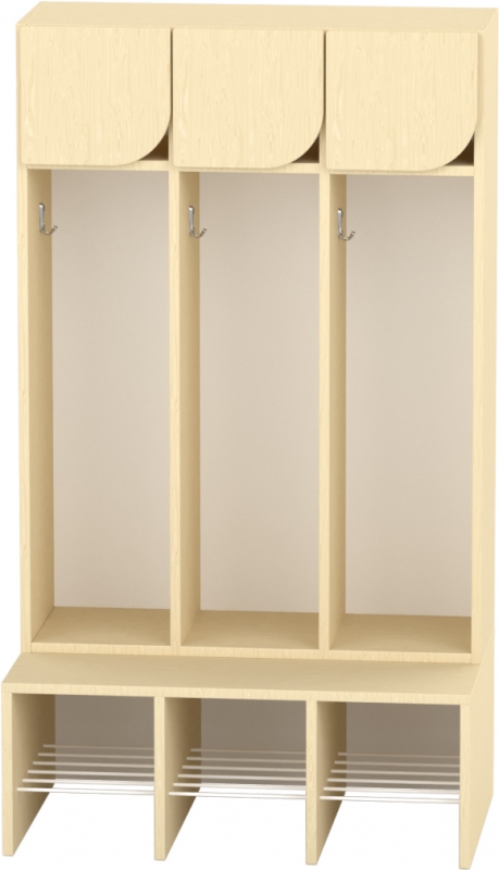 Gyermeköltöző 3 fős – felül ajtós, rácsos cipőtárolós – juhar Kialakítás: felül ajtós, alsó rácsos cipőtárolóval, ülőpados Férőhelyek száma: 3 fő Alapszín: juhar Készreszerelt: igen Térbeállítható: nem Termék szélessége: 78,5 cm Mélysége: alsó rész (ülőpad) 50 cm, felsőrész: 28 cm Magassága: 135 cm Ülésmagasság: 30 cm