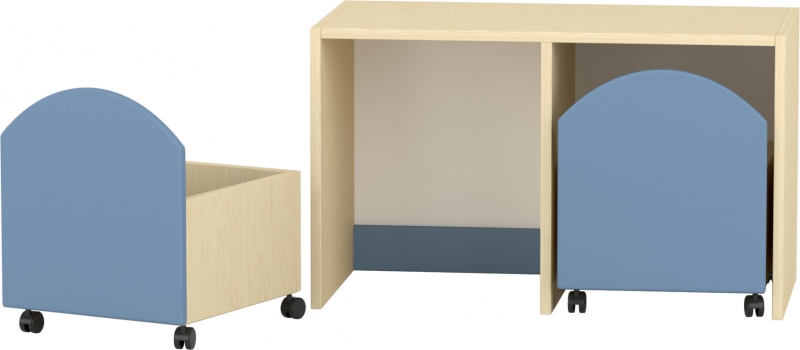 Praktikus, két gurulós játéktárolóval ellátott alacsony szekrényKészreszerelt termék Térbeállítható: nem Mérete: 80×40×48 cm