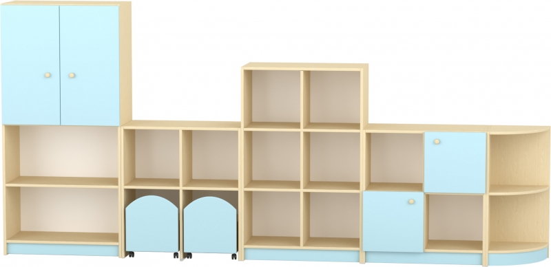 Játéktároló szekrény 2 gurulós tárolóval Praktikus, kétfakkos felső tárolórész, amely könnyen elérhető a mindennapi használathoz Alsó részben két külön gurulós tároló biztosítja a játékok és eszközök gyors, rugalmas elpakolását Stabil, gyermekbarát kialakítás lekerekített élekkel Szín: juhar–pasztellkék Készreszerelt termék Térbeállítható: nem Mérete: 80×40×88 cm