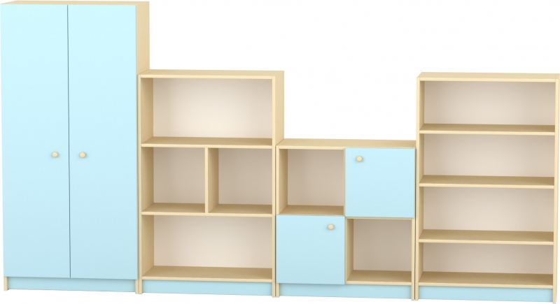 3 polcos, 4 fakkos tárolószekrény mindennapi használatra Átlátható rekeszekkel, könnyen elérhető tárolófelületekkel Stabil, gyermekbarát kialakítás kisebb csoportszobákba és játszósarkokba Szín: juhar–pasztellkék Készreszerelt termék Térbeállítható: nem Mérete: 80×40×128 cm