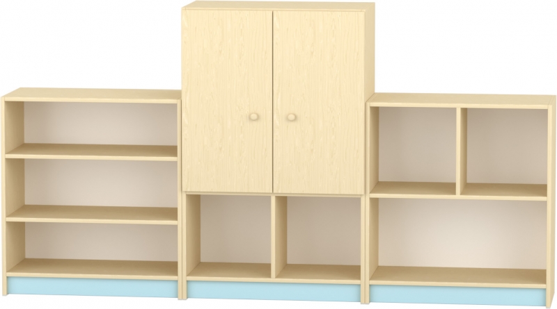 Kétfakkos, 2 polcos, 2 ajtós tárolószekrény mindennapi használatra Felső, zárt rész a rendben tartandó holmiknak, alsó, nyitott polcok a gyorsan elérhető eszközöknek Strapabíró, gyermekbarát kialakítás óvodai és bölcsődei környezetbe Letisztult, modern megjelenés acélkék díszítőelemmel Szín: juhar–pasztellkék Készreszerelt termék Térbeállítható: nem Mérete: 80×40×128 cm