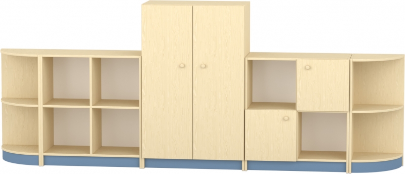 Hárompolcos, teljesen zárt ajtós szekrény praktikus tároláshoz Letisztult, rendezett megjelenést biztosít a teljesen takart frontnak köszönhetően Strapabíró, gyermekbarát kialakítás óvodai és bölcsődei használatra Modern, visszafogott lábazat díszíti Szín: juhar–acélkék Készreszerelt termék Térbeállítható: nem Mérete: 80×40×128 cm
