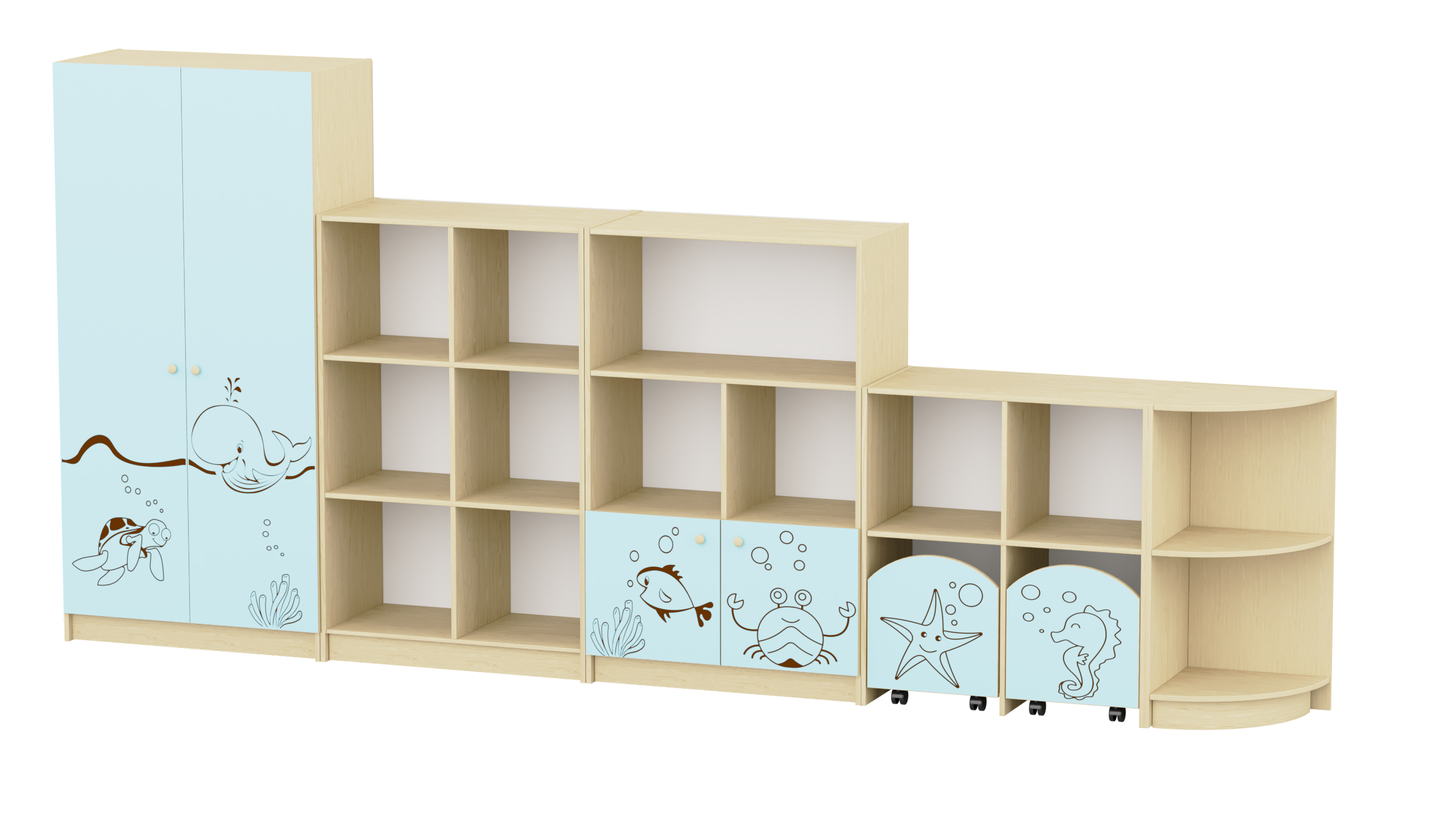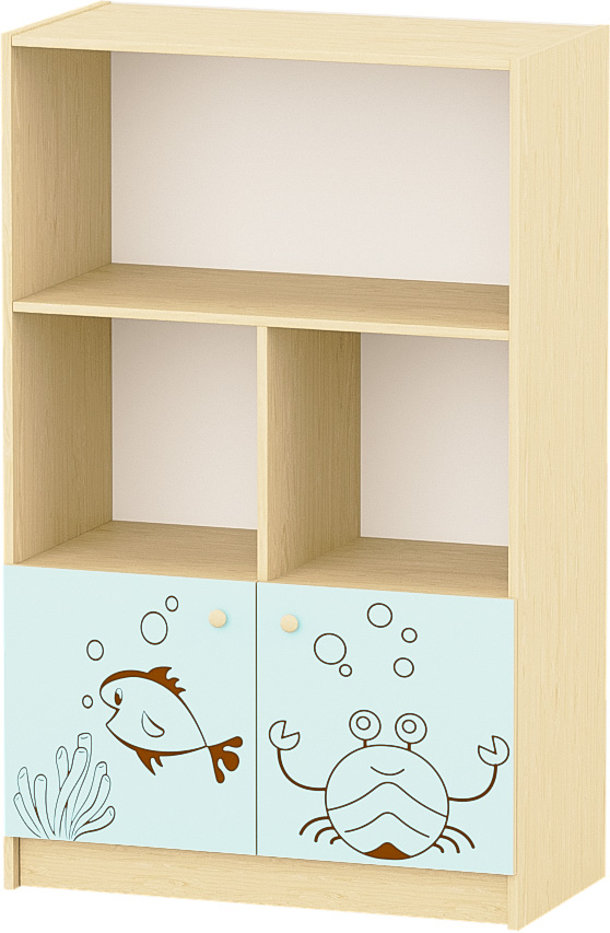 Mérete: 80x40x128 cm Színe: pasztellkék ajtók, juhar alsó káva Minta: halacska és rák