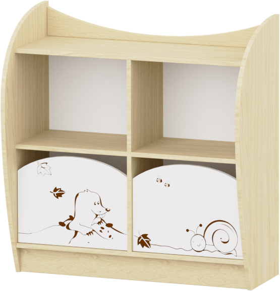 Kétfiókos kisszekrény, mezei állatos motívumokkal A bútor jellegzetessége a lágyan ívelt, szélesebb oldalelem, amelynek köszönhetően a polc kissé beljebb kerül, stabil és biztonságos elrendezést biztosítva. A felsőíves színes betét és az alsó, hozzá illő lábazat modern megjelenést ad. A kedves, mart mintás előlapokkal díszített szekrény játékos és barátságos hangulatot teremt a gyerekszobában vagy óvodai térben. A finoman megmunkált motívumok – például a kisvakond, csiga és a madárka – letisztult, természetközeli vonalvezetéssel készültek, amelyek időtálló megjelenést biztosítanak. A felső nyitott polcok könnyű hozzáférést adnak a mindennap használt játékokhoz, míg az alsó, mart mintás elemek esztétikusan rejtenek el kisebb holmikat. A mart díszítés időtálló, nem kopik le, és hosszú távon is megőrzi különleges, barátságos esztétikáját. A teljes konstrukció lekerekített élei és íves sarokkialakítása biztonságos választássá teszik bölcsődés és óvodás környezetbe egyaránt. A bútor 2 fiókos kialakítású. A fiókok fém síneken futnak, így használatuk stabil, (a fiókok nem esnek ki) biztonságos. A túlnyúló, felsőperemes kialakításnak köszönhetően a kisszekrény teteje is pakolható, semmi nem esik le róla. Szín: fehér-juhar Készreszerelt termék. Térbeállítható: Nem Mérete: 82x38x86 cm