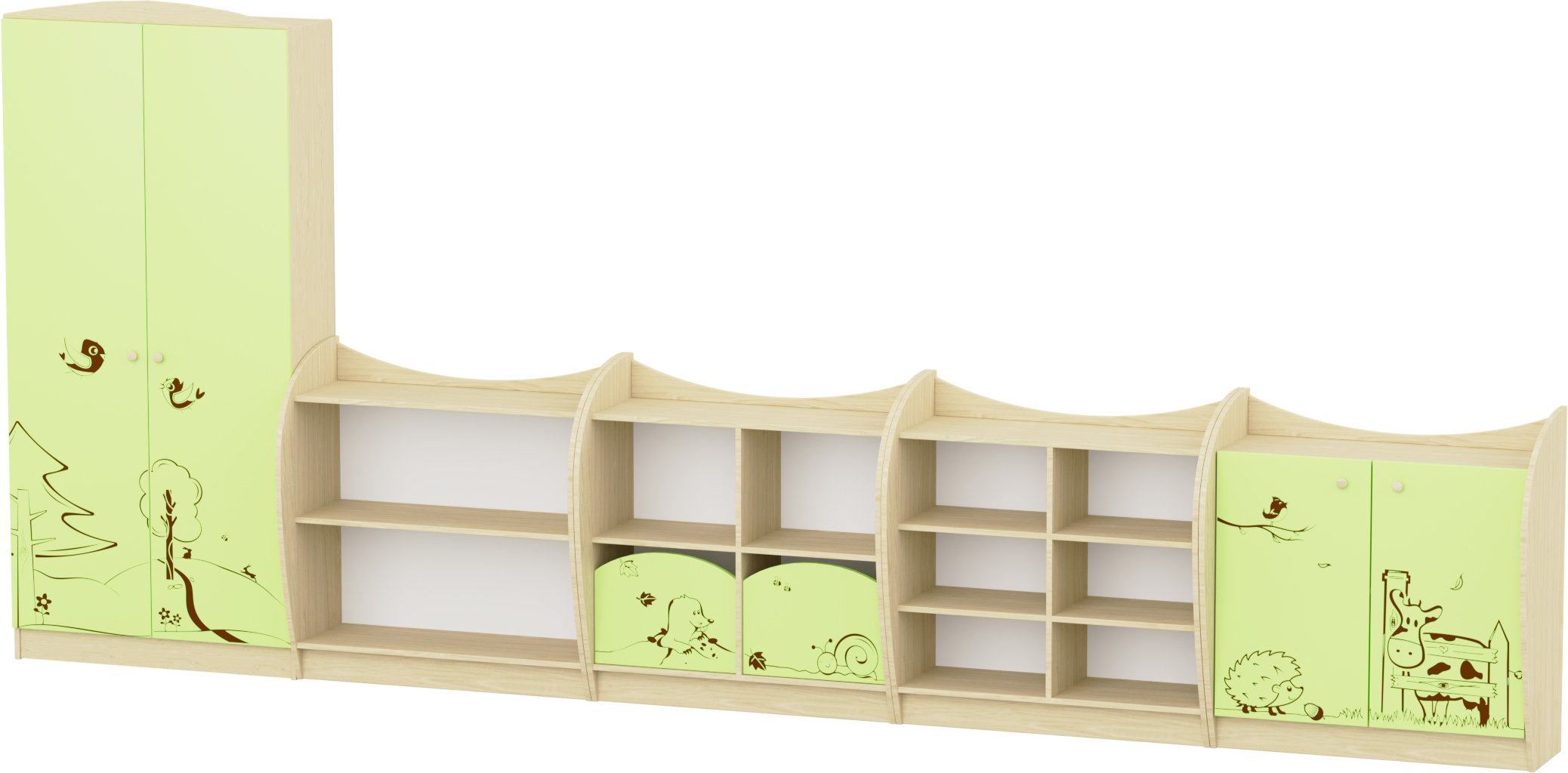 A kétajtós, egy polcos tárolószekrény praktikus és biztonságos megoldás bölcsődei és óvodai csoportszobákba. Ívelt oldalelemei gyermekbarát kialakítást biztosítanak, míg a felső színes díszítőelem és a hozzá illő lábazat barátságos, modern megjelenést adnak. A belső polc jól rendszerezhető tárolóhelyet kínál, az ajtók pedig kényelmes, könnyen kezelhető használatot garantálnak. A masszív korpusz és a lekerekített élek ideálissá teszik mindennapi intézményi használatra. A teljes konstrukció lekerekített élei biztonságos választássá teszik bölcsődés és óvodás környezetbe egyaránt. Szín: zöld-juhar Készreszerelt termék. Térbeállítható: Nem Mérete: 82x38x86 cm