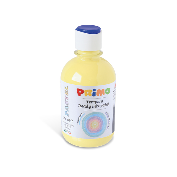 Készre kevert, pasztellsárga tempera 300 ml-es műanyag flakonban. Különféle felületeken használható, mint például papír, karton, fa, szövet, üveg, terrakotta, fém és műanyag. A festék megfelelő fixálóval rögzíthető. Vízbázisú festékekkel együtt is használható.