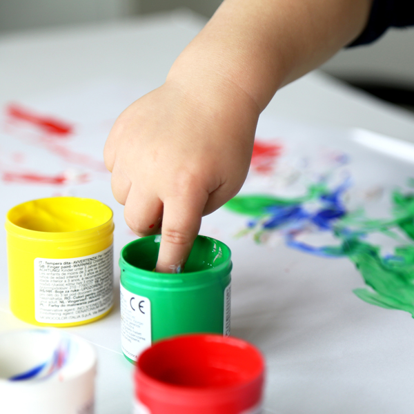 Ujjfesték készlet – 6 szín (100 ml)Bőrbarát, könnyen lemosható ujjfesték készlet 6 élénk színben (piros, sárga, kék, zöld, fekete, fehér), 100 ml-es tégelyekben; fejleszti a finommotorikát, kézhasználatot, színérzékelést és kreativitást, ideális óvodai festős tevékenységekhez.