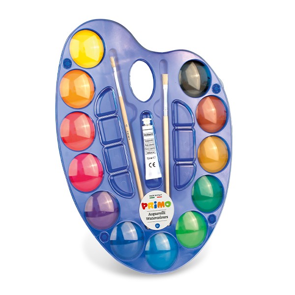 Ez a prémium minőségű jumbo vízfestékkészlet 12 élénk, erősen pigmentált színt tartalmaz, melyek kiváló minőségű porokból préselve készülnek. A színek, fényesek és rendkívül élénkek, így minden ragyogó és élettel teli lesz. A műanyag keverőpaletta kényelmes és praktikus kialakítású, két ecsettel és egy fehér temperával kiegészítve, hogy segítse a színek könnyű alkalmazását és keverését. Kis mennyiségben használva az akvarellek intenzív, nem átlátszó hatást adnak a fehér festék hozzáadásával pedig pasztell árnyalatokat érhetünk el. Ez a festékkészlet tökéletes választás klasszikus akvarell technikákhoz papíron és kartonon, valamint különböző felületeken is alkalmazható speciális technikákhoz. Tulajdonságaiból adódóan a festékek ráragadhatnak egyes szövetekre, ezért célszerű az anyagokat azonnal vízzel és szappannal kimosni.