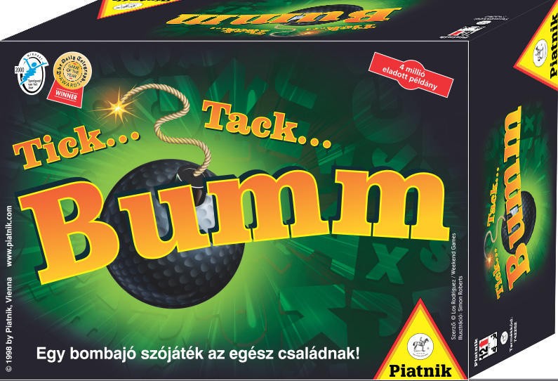 Tartalma: 55 db 6x9 cm-es kétoldalú kártya ( 110 szótöredék ) 1 db dobókocka ( 3 jelzéssel ) 1 db ? 7 cm-es bomba 1 db játékszabály