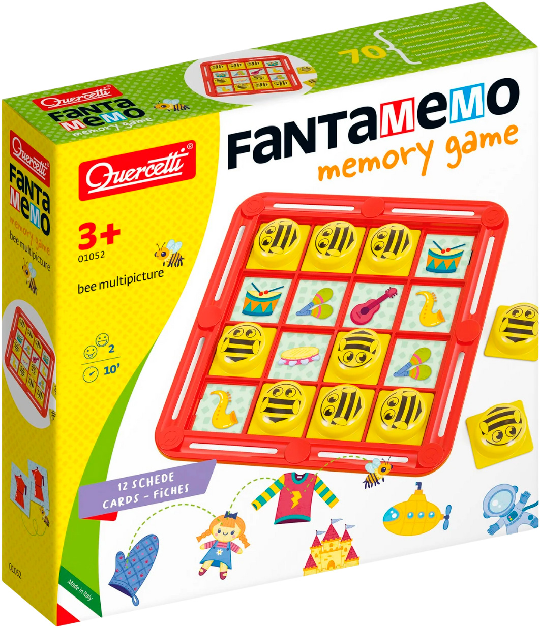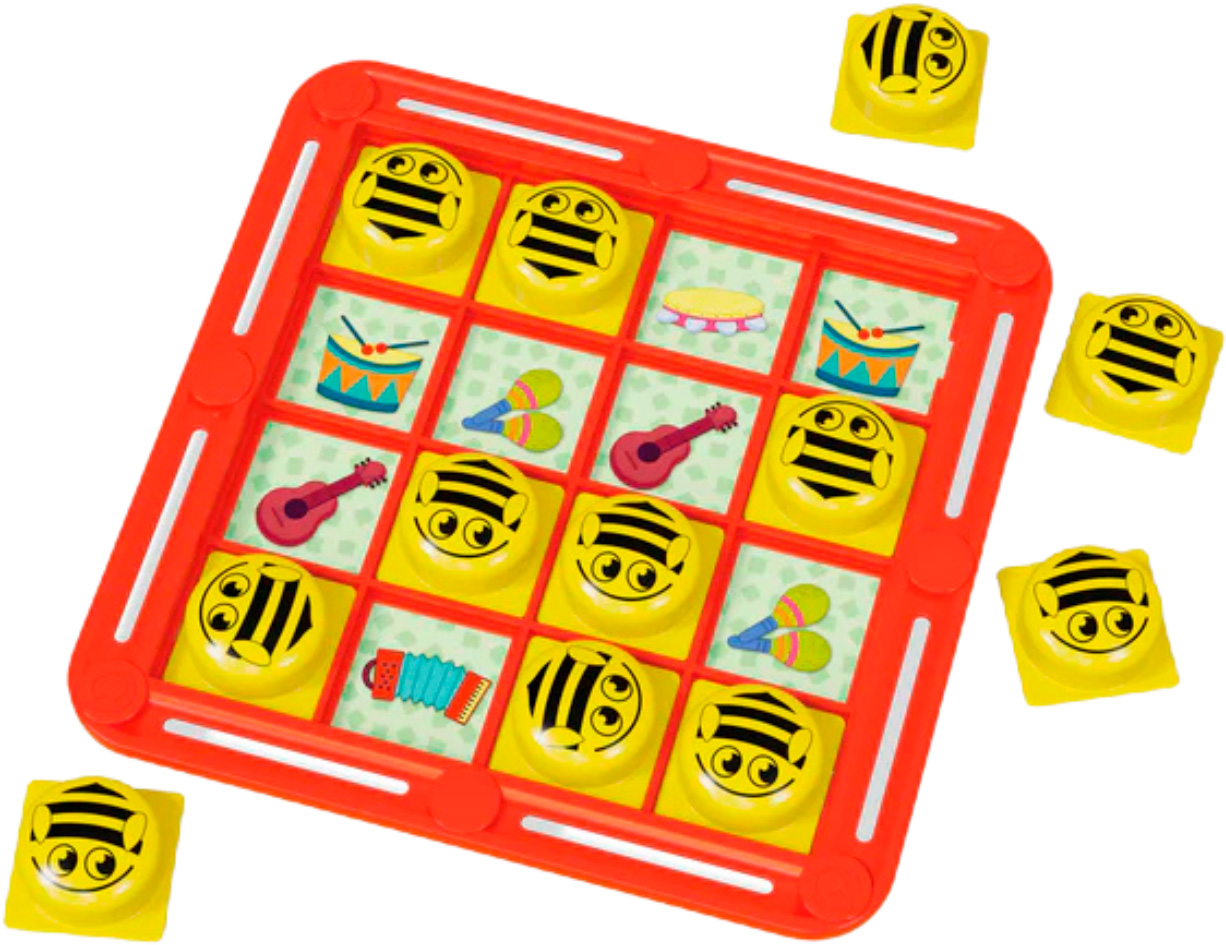 Szórakoztató fejlesztő játék, amely segít a gyermekek figyelmének és memóriájának javításában. - Méhecskés memória játékszett. A készlet tartalma: - -1 db piros játékkeret - -16 db sárga méhecske - -12 db különböző témájú kártya. anyaga: papír, műanyag