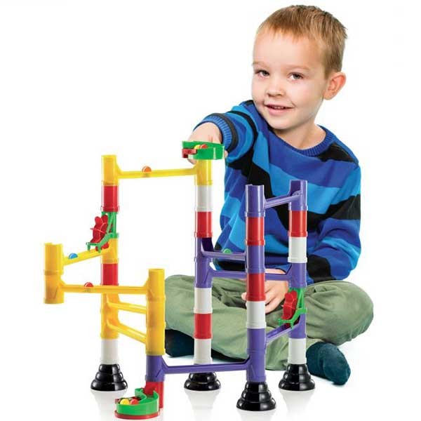 45 db elemből álló készlet igazi kihívás a gyermekek számára. Az elemek 4, 5-18 cm közöttiek. Alkoss minél izgalmasabb golyópályát.