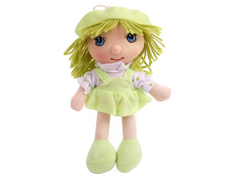 Puha rongybaba kalappal és szoknyával. Mérete: 23 cm.