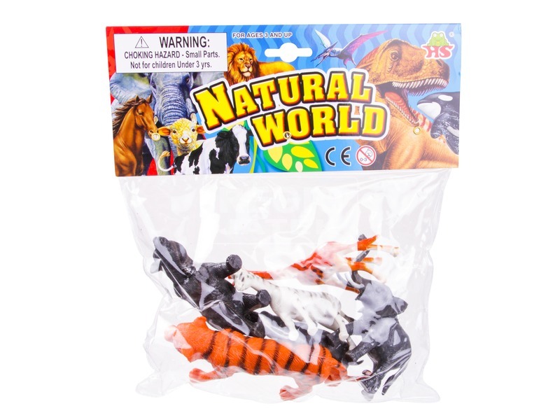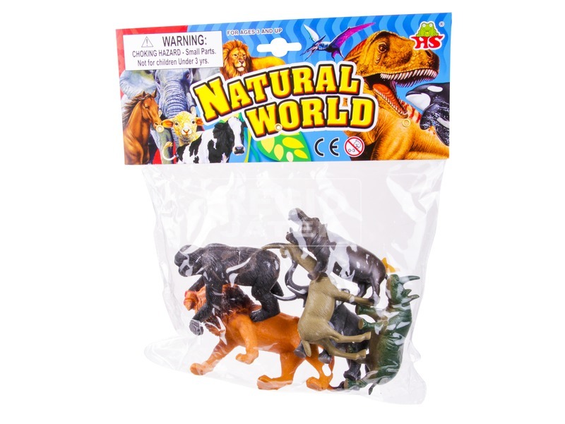 6 db-os, különböző vadállatokból álló készlet, puhább műanyagból. Az állatok hossza kb.: 10-15 cm. Tartalma többféle afrikai állat. A vadállatok véletlenszerűen vannak csomagolva, azok nem választhatók!