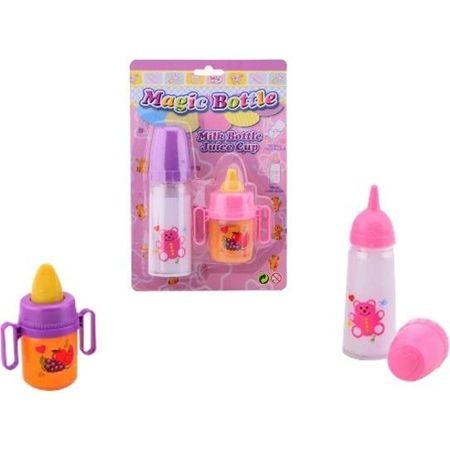 Itasd meg játékbabáidat tejjel vagy gyümölcslével. A csomag 2 db cumisüveget tartalmaz, az egyik egy tejjel feltöltött cumisüveg a másik pedig két fogantyús és gyümölcslével van feltöltve.