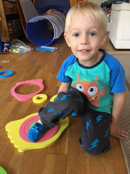 - Nehezíthetjük úgy is a játékot, hogy a karikákat nem csak a sima padlón helyezzük el, hanem fel- és le is kelljen lépnie a gyermeknek a belebújáshoz, esetleg más-más anyagokon kelljen végigmennie hozzá, ami a tapintását is fejleszteni fogja.