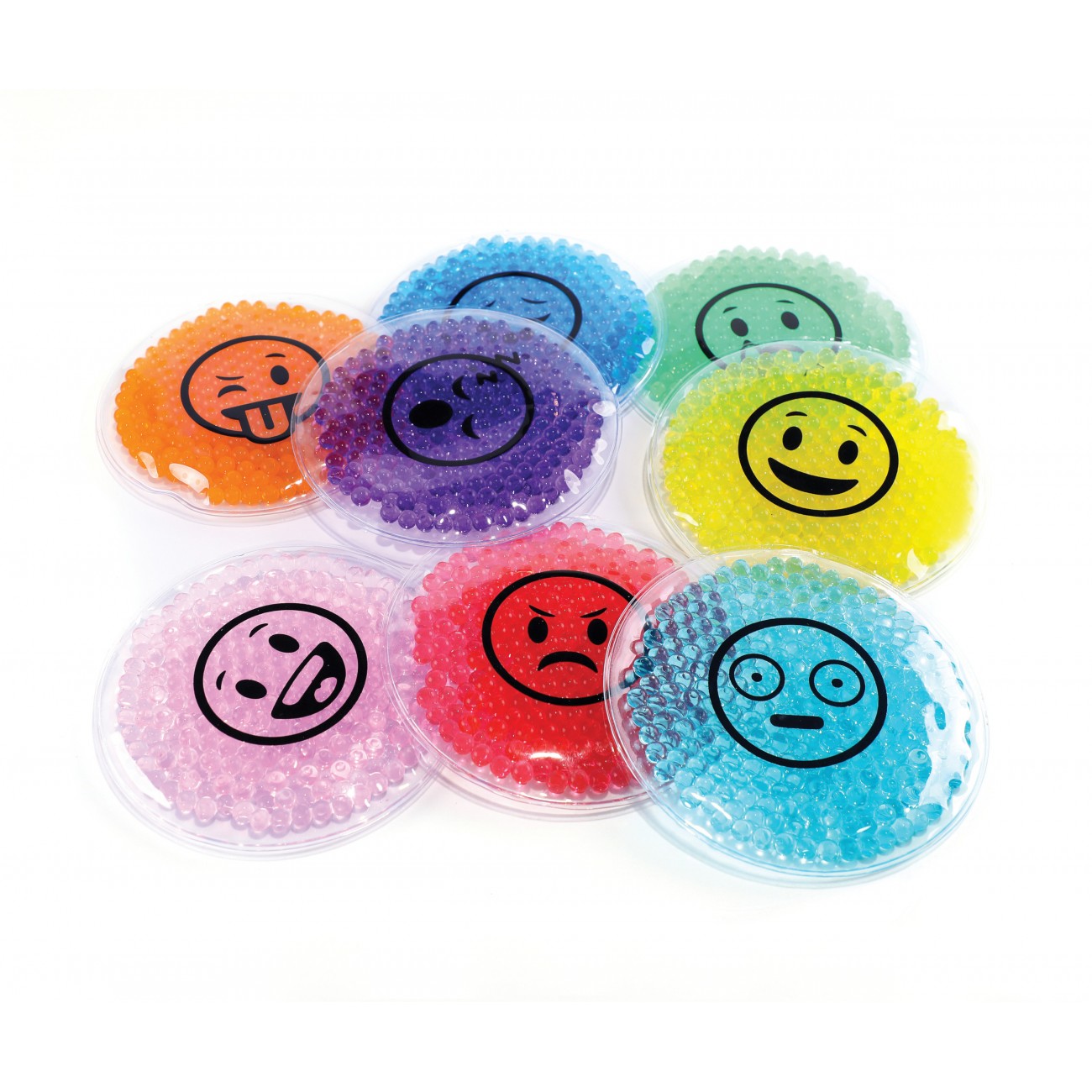 Kiváló eszköz aktív tanulási játékokhoz. A géllel töltött, tapintható tasakok lekerekített felülettel és színes gélgolyókkal stimulálják a gyerekek érzékeit. Segítenek az arckifejezések megértésében, miközben fejlesztik a motorikus készségeket, ösztönzik az együttműködést, elősegítik a színek felismerését és erősítik a szociális tudatosságot. Könnyen tisztíthatók egy egyszerű törlőkendővel. Könnyen megfoghatók és tartásuk is egyszerű. Biztonságos, rugalmas és tartós kialakítású. A 8 darabos készletben található sárga, rózsaszínű, narancs, türkiz, zöld, piros, kék és lila színben tasakok, amelyek különböző érzelmeket ábrázolnak. Méret: Átmérő: 15 cm