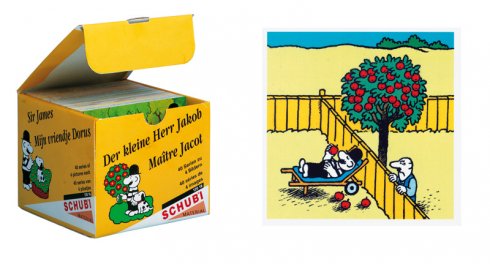 Mindig megmosolyogtató alkalom Jakob Úr felbukkanása. Ez a fekete-fehér csíkos inget viselő, okos kis fickó, vicces kiskutyájával a képregényvilág egyik legszerethetőbb figurája. Derűs kedélyével, szellemességével és csínytevéseivel sokak szívébe belopta magát. De ezek a csínytevések sosem sértőek, gonoszak vagy durvák ám! Nem lehet tőle őket rossz néven venni! 40 db négy részből álló képsorozat mutatja be Jakab Úr időtlen kalandjait. A kártyákon nem található felirat, így a történetek kitalálásánál szabadon szárnyalhat a fantáziánk! A Jakab Úr által közvetített életkedv és pozitív gondolkodás olyan értéket képvisel, melynek napjainkban egyre nagyobb jelentősége van.