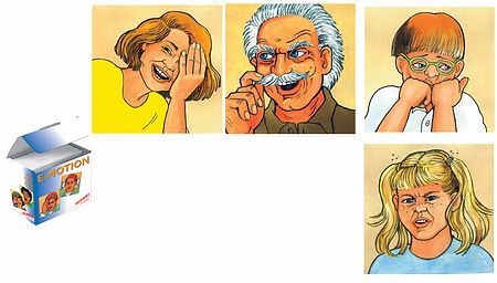 10-féle, különböző érzelmeket megjelenítő képsorozat, melyek közül néhány az Érzelmek képekben képes történetek kincsesládájában, A4-es feladatlap formájában is elérhető, ha még több, történetalkotással, ragasztással és színezéssel kapcsolatos mókára vágysz. (rendelési szám: 120 49)