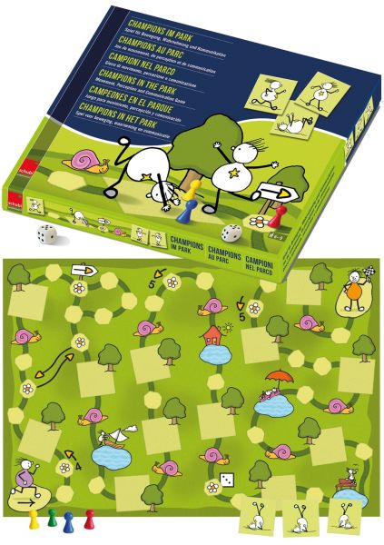 A doboz tartalma: 1 db játéktábla 72 db képes kártya(3 szett, 24 db kártyával) 1 szett: 24 db testhelyzet 2 szett: 24 db további hasonló testhelyzet 3 szett: 24 db további fordított testhelyzet 6 db bábu 1 db dobókocka 3 db tasak (1 mindegyik szettnek)