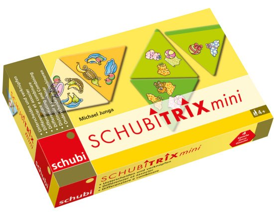 A Schubitrix mini, egyénileg is játszható triominó játékot a hagyományos dominó játék szabályai szerint játsszuk. Kezdésként helyezzük az asztalra az egyéni színnel jelölt kezdő háromszöget, a többi kártyát pedig képes felükkel felfelé szórjuk szét az asztalon. A gyermek feladata, hogy kiválassza a szétszórt háromszögek közül a kezdő háromszöghöz illőt, majd folytassa a párosítást, amíg az összes kártyát fel nem használta.