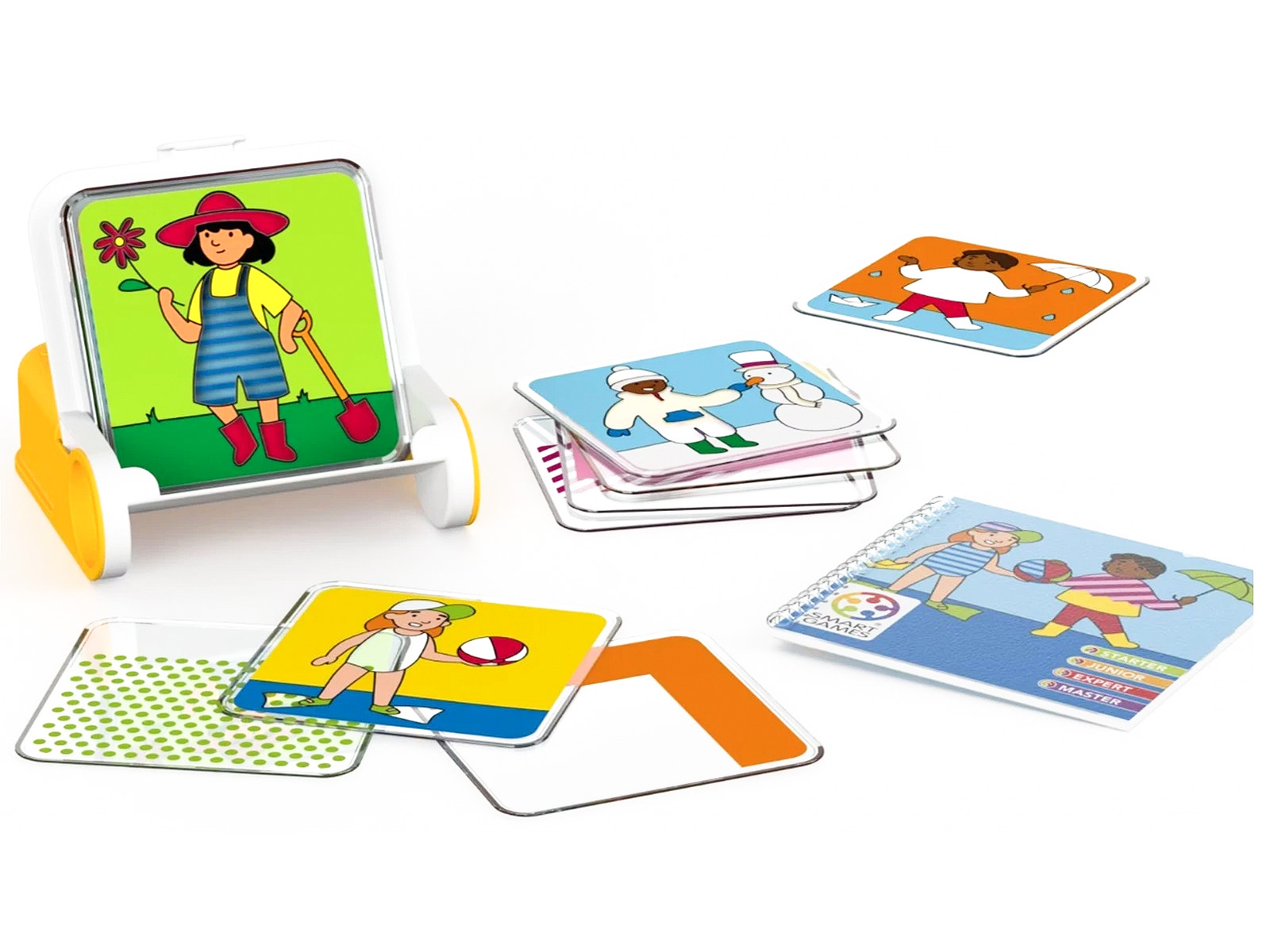 Ruci Buli – Smart games Tartalom: játéktábla, 8 színes ruhalapka, 4 figura lapka, feladatfüzet 80 kihívással és megoldásokkal Anyag: tartós, kemény műanyag Játékosok száma: 1 fő Feladványok száma: 80 db Doboz mérete: kb. 24x24x4,5 cm Ajánlott korosztály: 4 éves kortól Játéktípus: logikai, fejlesztő, egyéni játék Fejlesztett készségek: koncentráció, logikai gondolkodás, sorrendiség, vizuális észlelés, problémamegoldás
