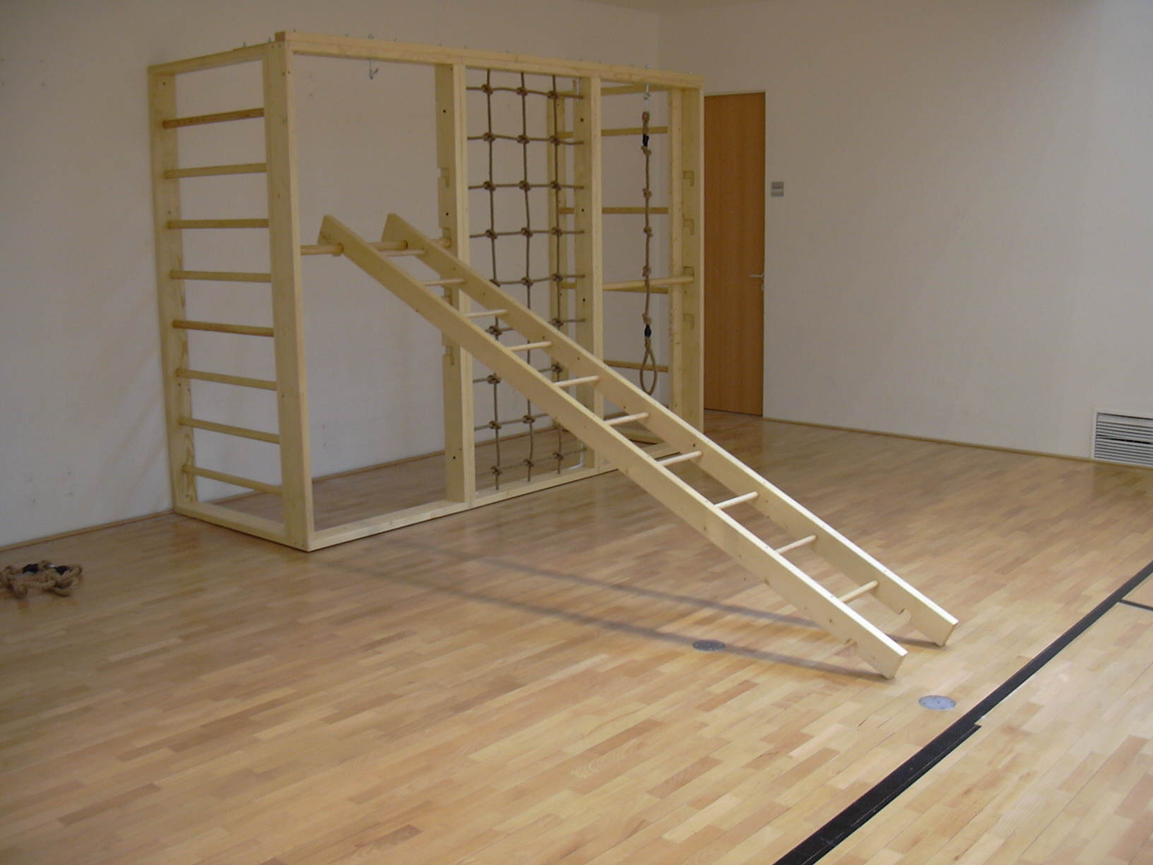 Fenyőből készült létra bordásfalra, kampóval
