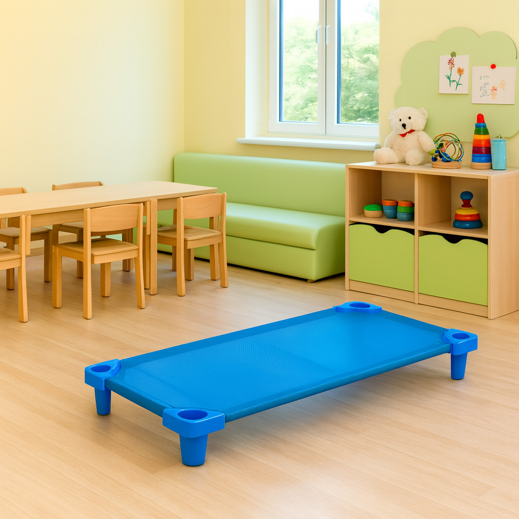 Bölcsődei és óvodai használatra tervezett esztétikus, ultrakönnyű fektetőágy.