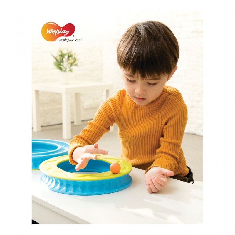 Fantasztikus szem-kéz koordinációs készséget fejlesztő és logopédiai gyakorlatban is használható játék! A pálya óvatos elforgatásával, döntögetésével kell a golyót folyamatosan körbe-körbe gurítani. Alsó és felső oldalán, a külső és belső köríven egyaránt gurítható a golyó. Használható páros játékként is erősítve a kooperációs készséget. Csoportos és egyéni fejlesztő órák tökéletes eszköze. Logopédiai gyakorlatban (fújós játékként használva), fejleszti a légzéstechnikát, elősegíti a helyes beszéd kialakulását. Ügyesnek kell lenni, hogy ne essen le A Weplay márka 1999-ben indult el Tajvanon, azzal a céllal, hogy olyan termékeket gyártson, amik elősegítik a gyermekek motorikus készségeinek fejlődését, kommunikációját és kreativitását. A Weplay kisgyermekkori neveléssel kapcsolatos szakértelme a sarokköve a tervezési célkitűzéseinek, amelyek célja, hogy gyakorlatias, mozgatható és tárolható, nagy játékértékkel rendelkező berendezéseket készítsenek, amelyek elősegítik a készségfejlesztést. Szisztematikus termékek a holisztikus fejlesztéshez A Weplaynél a gyermekek holisztikus igényei szerint fejlesztik szisztematikus termékeiket, beleértve a vizuális-auditív-tapintási észlelést, a motoros készségeket, az egyensúlykoordinációt, a finommotorikus készségeket és a kreatív játékot. Az univerzális dizájn alapján, Tajvanon készült Weplay termékek segítenek a gyermekek boldog és egészséges felnövekedésében.