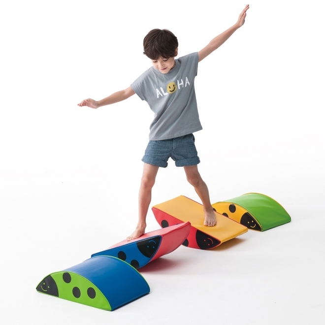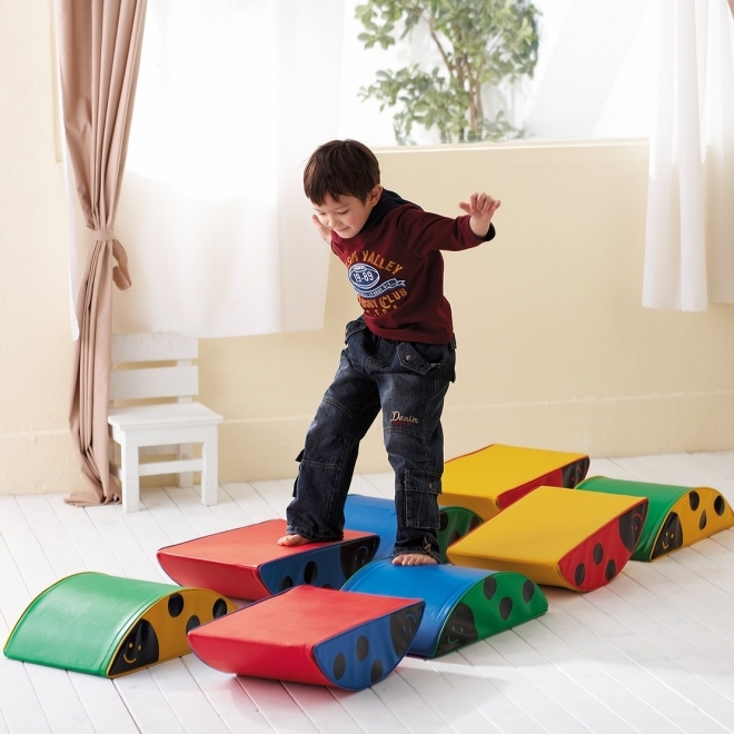 Vidám modulkészlet a legkisebbeknek piros, kék, sárga, zöld színekben. Használható az ívelt oldalukkal lefelé billenő elemnek, az egyenes oldalukkal lefelé pedig kis domboknak. A készlet tartalma: 4 db katica elem 1 db hernyó elem. A katicák mérete: 30x50x14 cm A hernyó mérete: 120x50x14 cm 6 hónapos korú gyermekek használatára CE minősítéssel ellátva!