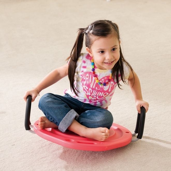 Tartalma: 1 db egyensúlyfejlesztő eszköz, 2 db fogantyúval. A fogantyúk eltávolíthatók. A tárcsa alján egy gömbölyű rész biztosítja a folyamatos billegést. Ezekkel az eszközökkel a gyermek megtapasztalhatja a bizonytalan egyensúlyi helyzetet és elsajátítja az ahhoz való alkalmazkodást. Terápiás jelleggel is használhatóak. Sérült, magatartászavaros gyerekeknél a bölcsőben való ringás élményét idézhetik vissza. A termék mérete: 51x46x20 cm