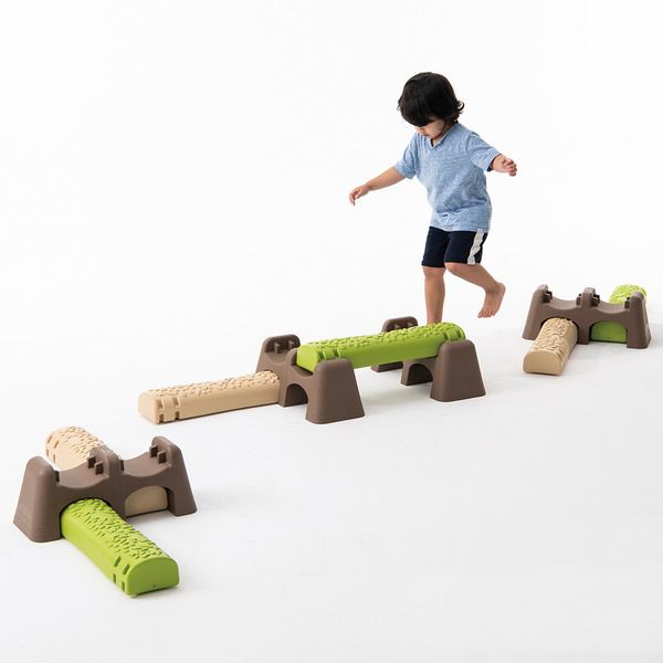 1. A dzsungel egyensúlyozót egy erdei út ihlette. A rönkök egyik oldala lapos, a másik pedig domború így ez különböző kihívást jelent a gyerekek számára.