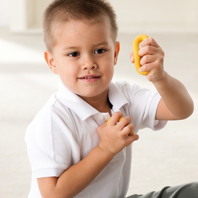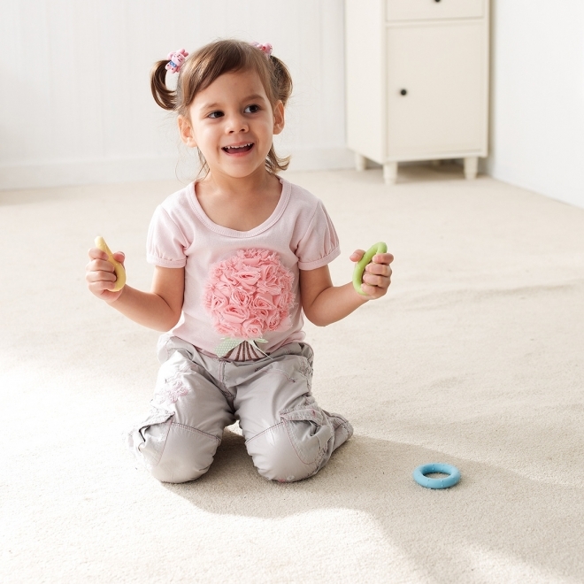 A karikák kis mérete lehetővé teszi annak használatát minden korosztály számára. A háromféle nehézségi szint segít a gyermekeknek fokozatosan erősíteni a fogást. Könnyen tisztítható.