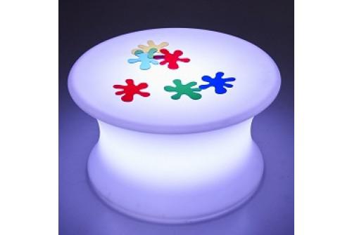 Folyamatosan színét változtató világító asztal, biztonságos, nyugtató és lágy világítással.