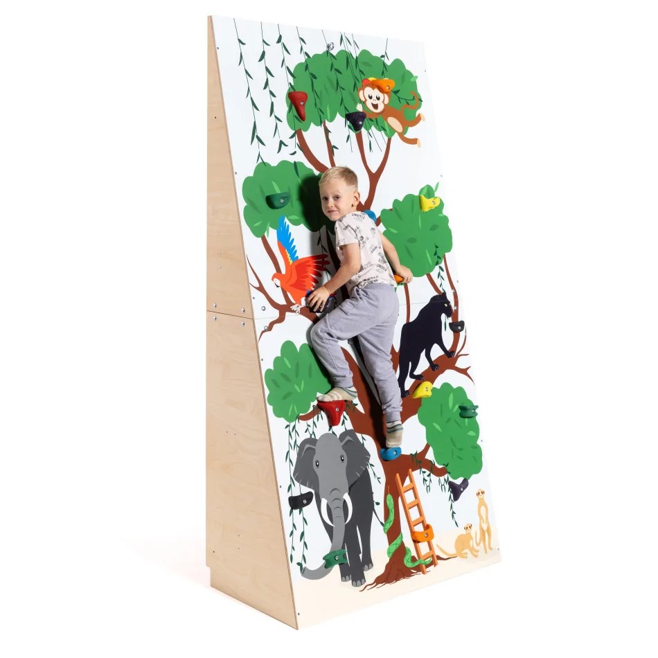 A dzsungel mintázat élményszerűvé teszi a mászást, miközben támogatja a képzelőerő és a kreativitás fejlődését.