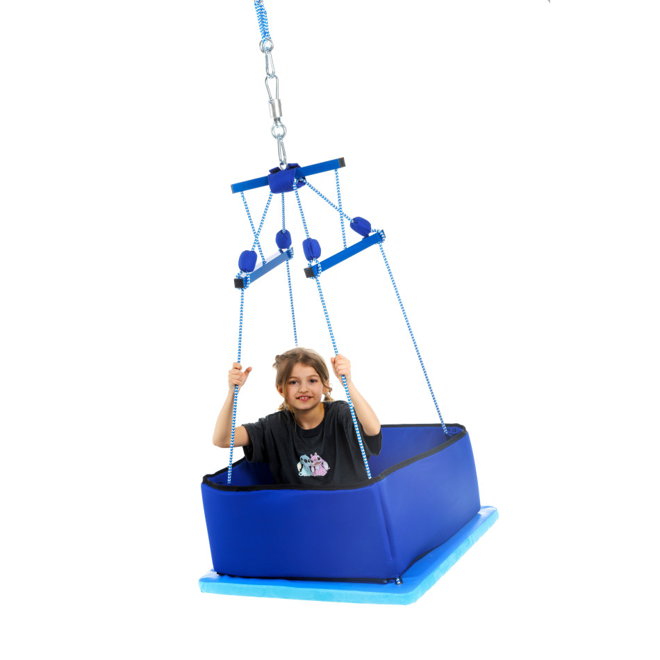 A kis szenzoros terápiás hinta leesésgátlóval biztonságos és kényelmes megoldást nyújt a legkisebb gyermekek számára.
